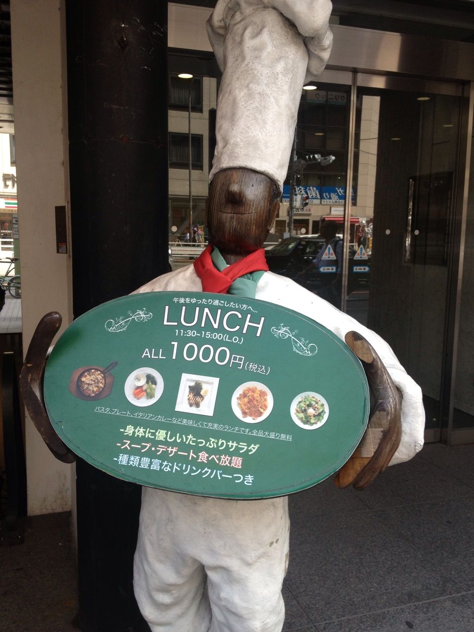 メインはパスタやグリルなど。サラダ、ドリンクバー、デザート食べ放題付き。
