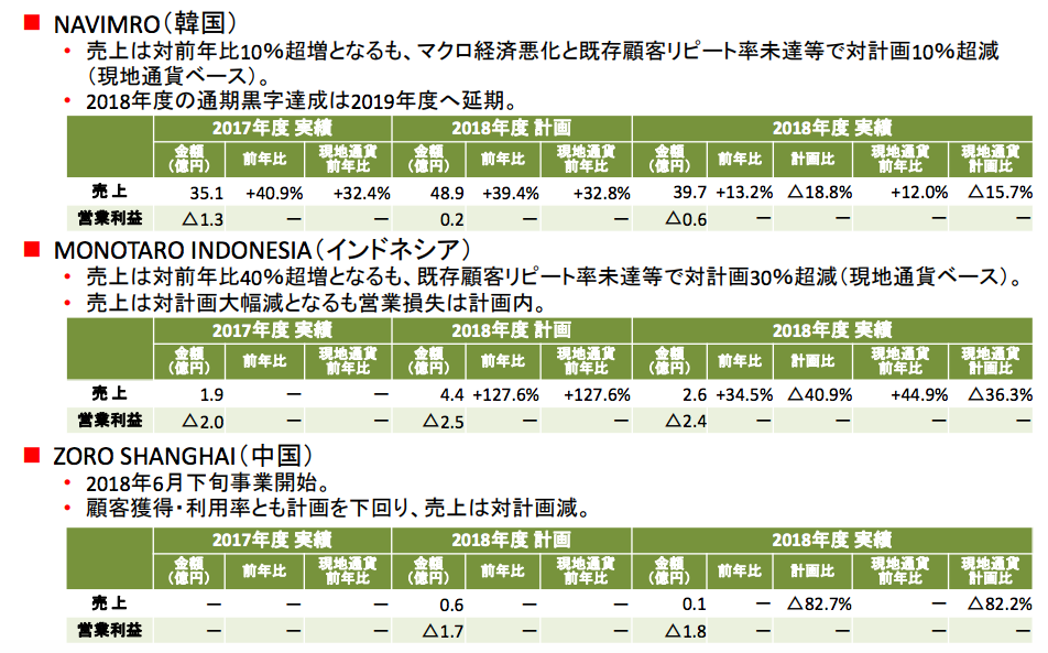 国内事業とは別で、韓国・中国・インドネシアで行っているグローバル事業を見てみます。各国 前年比では成長しておりますが、計画対比で見ますとビハインドとなっております。韓国に関しては、今年黒字化が予定されており、今期の進捗に注目したいところ。