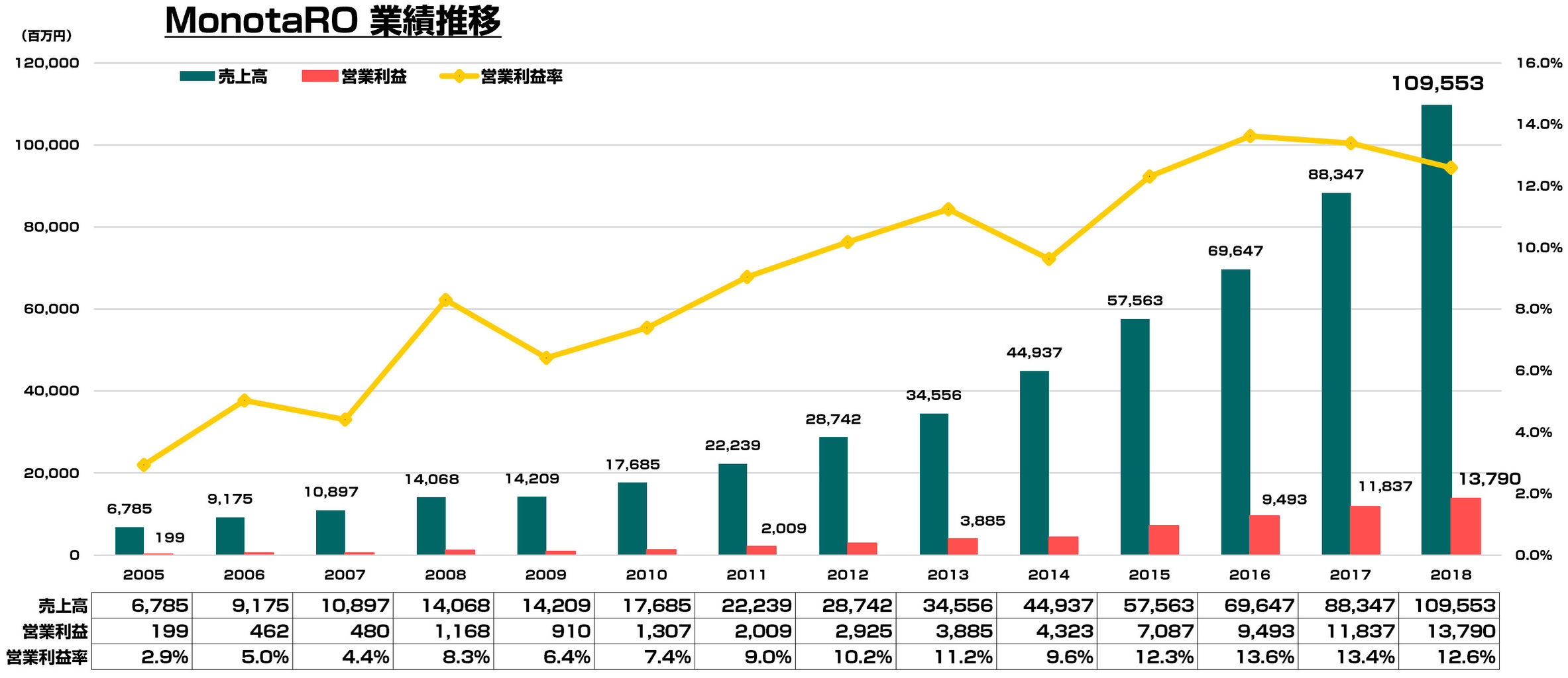ということで、個人的に大注目な 工業用通販事業を行うMonotaROの2018年12月期通期決算が出てきましたので、振り返ります。安定の綺麗な成長ぶりでした。