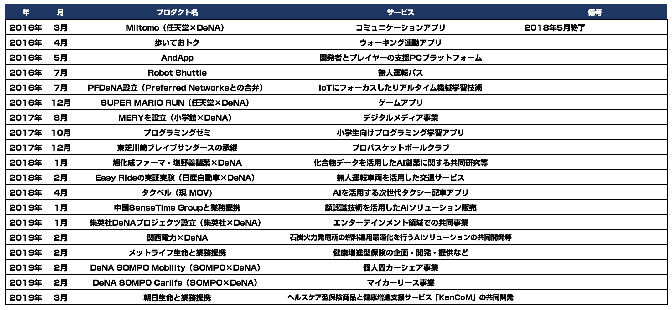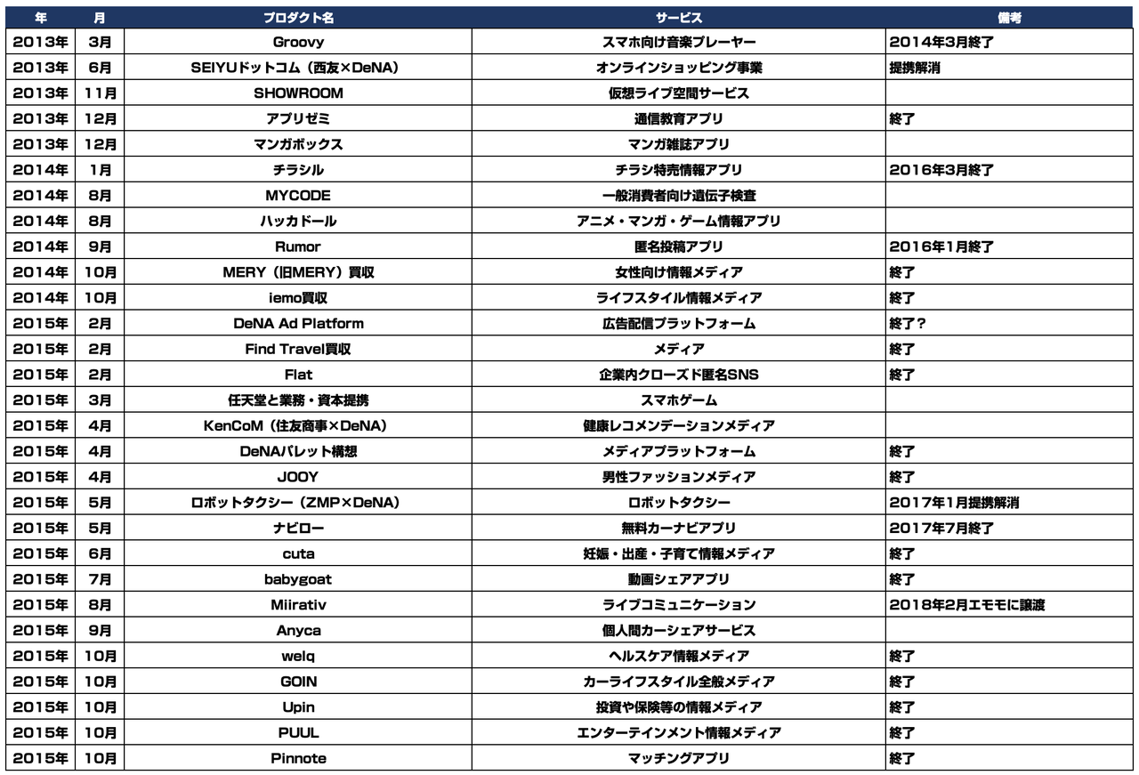 個人的に無知で驚いたのが「みんなのウェディング」が元々DeNAの新規事業だったということ。また、無料通話アプリのcommも懐かしいですね。