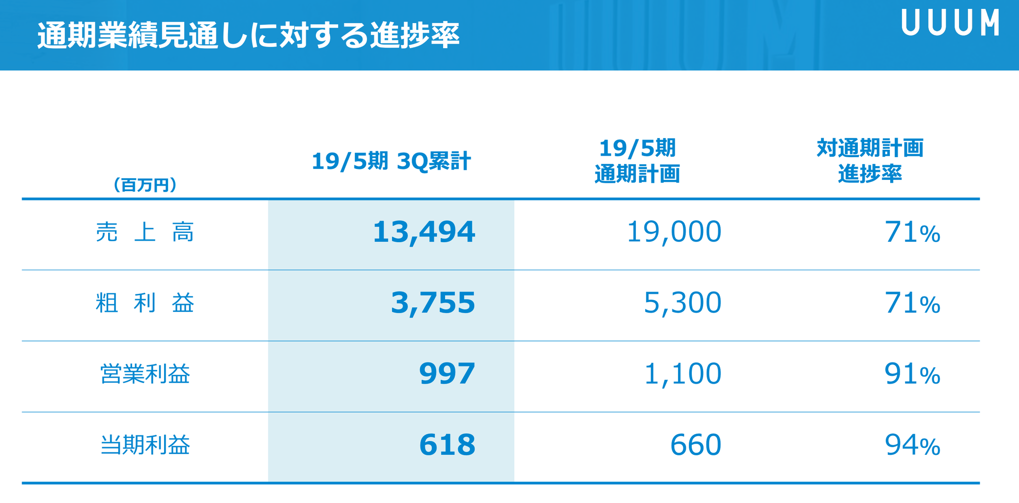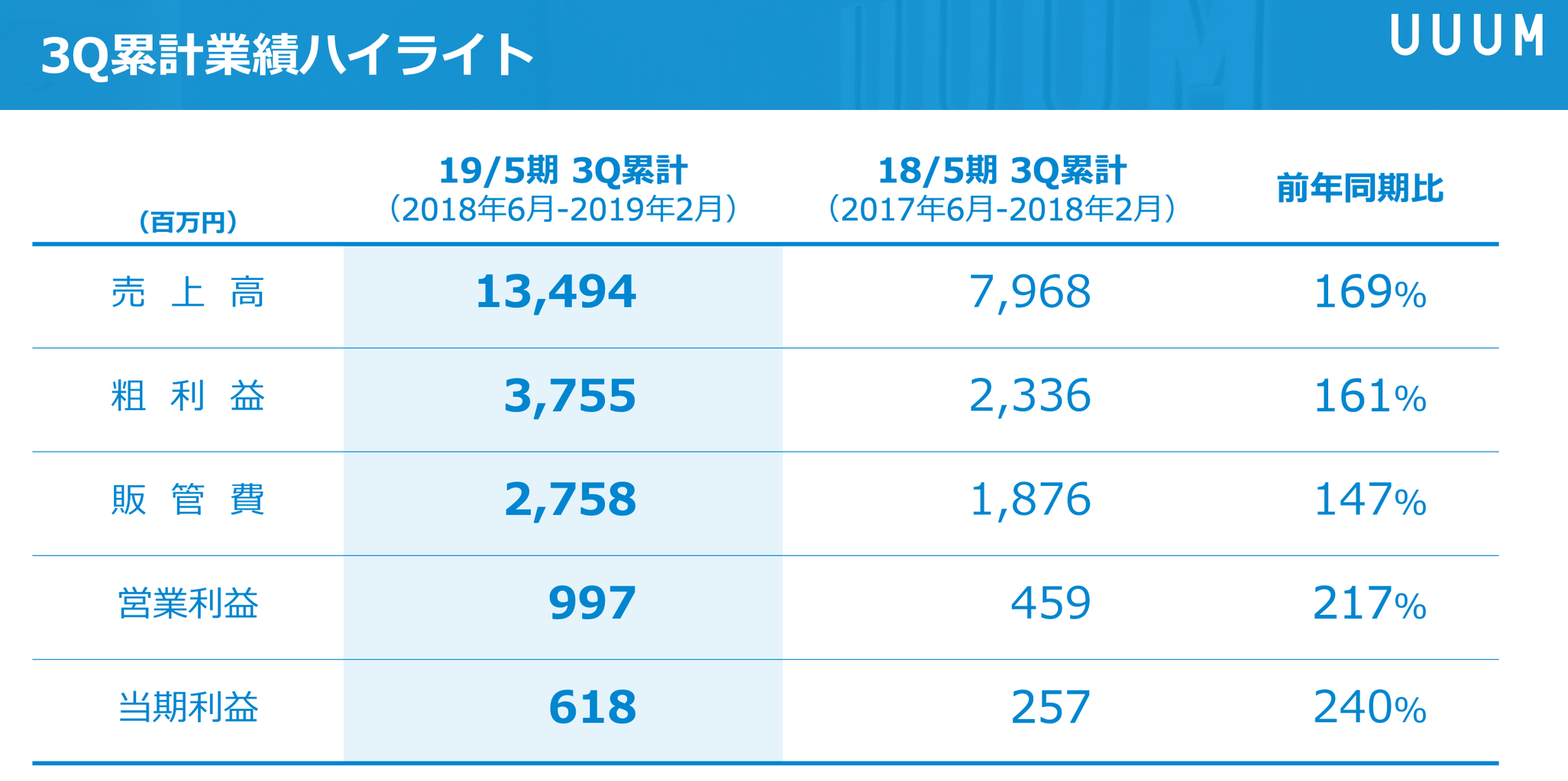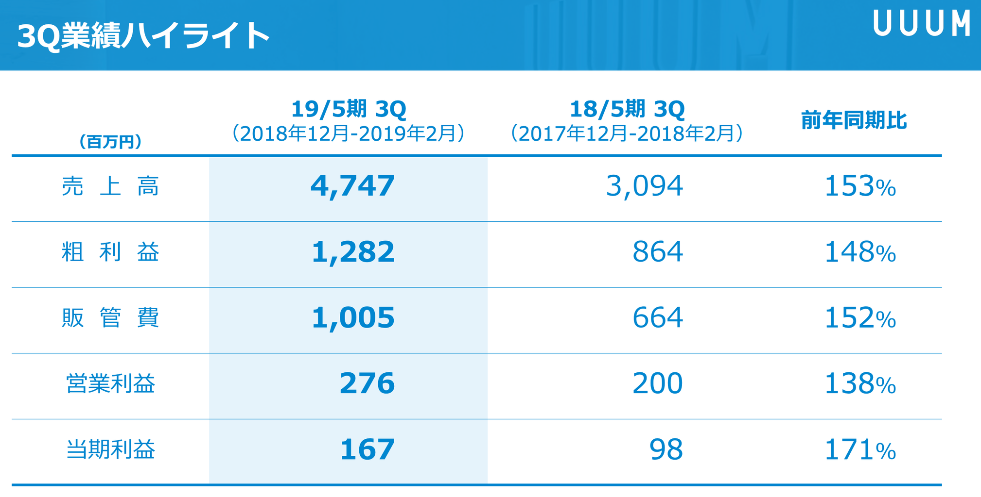 出典:UUUM 2019年5月期第3四半期 決算説明会資料