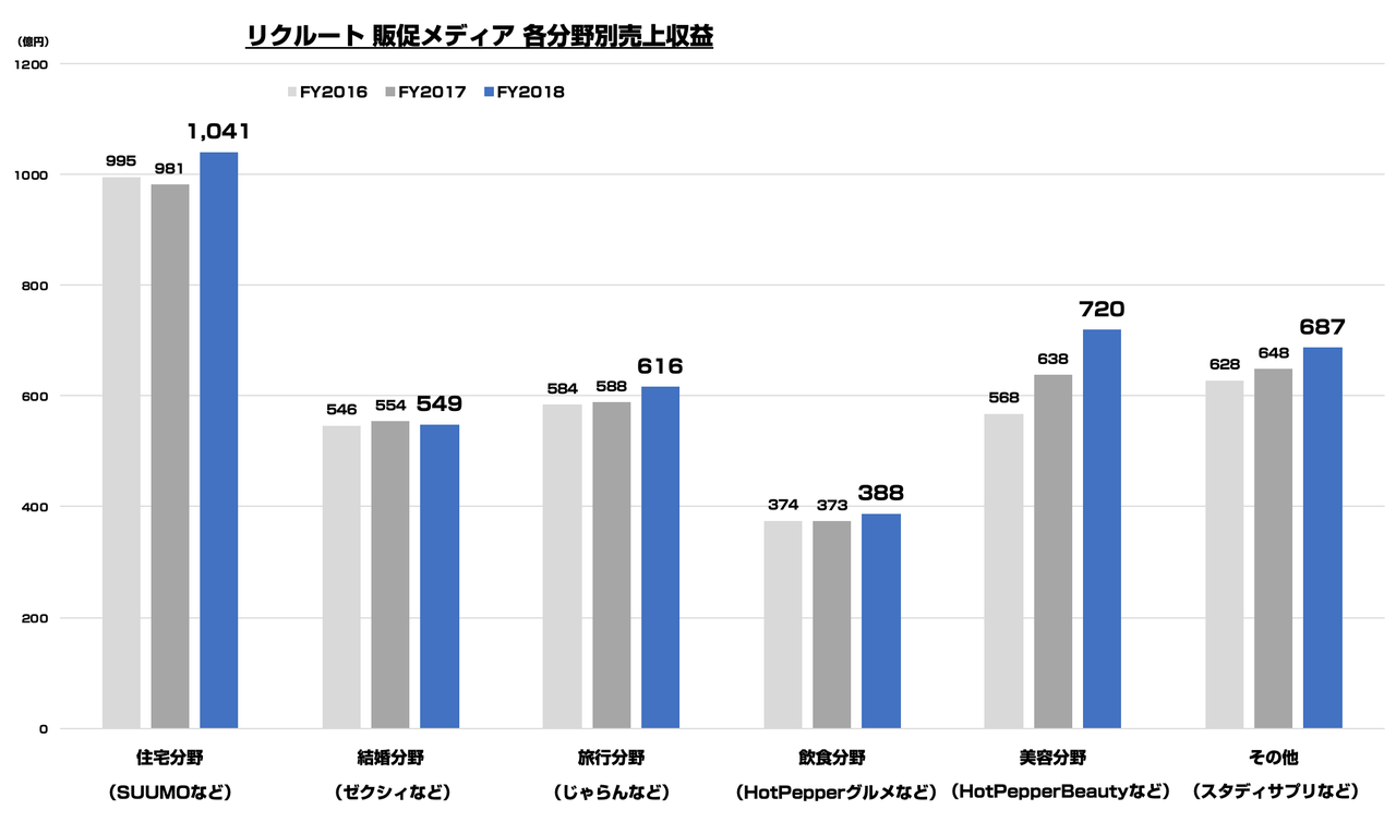 ということで、リクルートについて。先日、2019年3月期の通期決算が出てきまして、各販促メディアの売上についてサラっとだけ触れてみたいと思います。