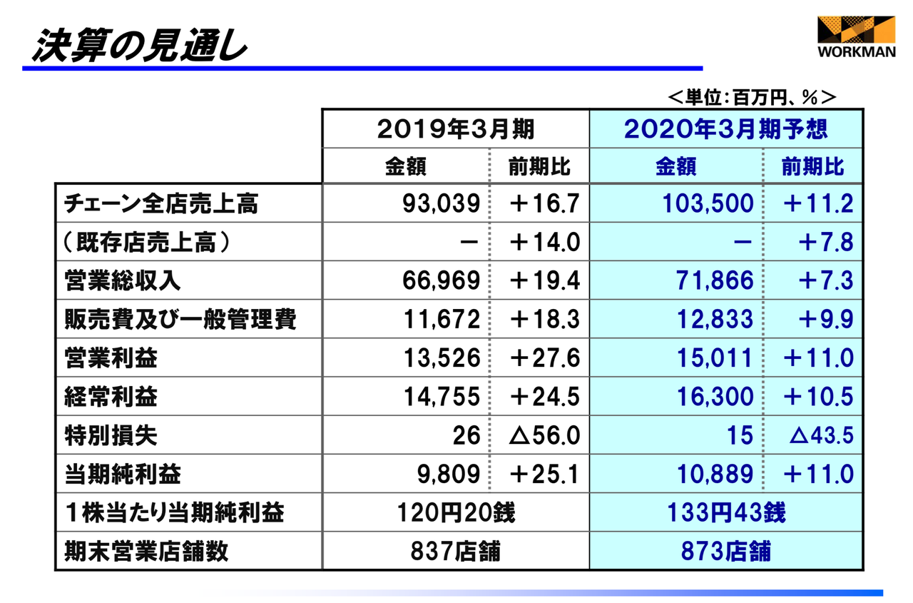 出典:ワークマン2019年3月期通期決算説明会資料