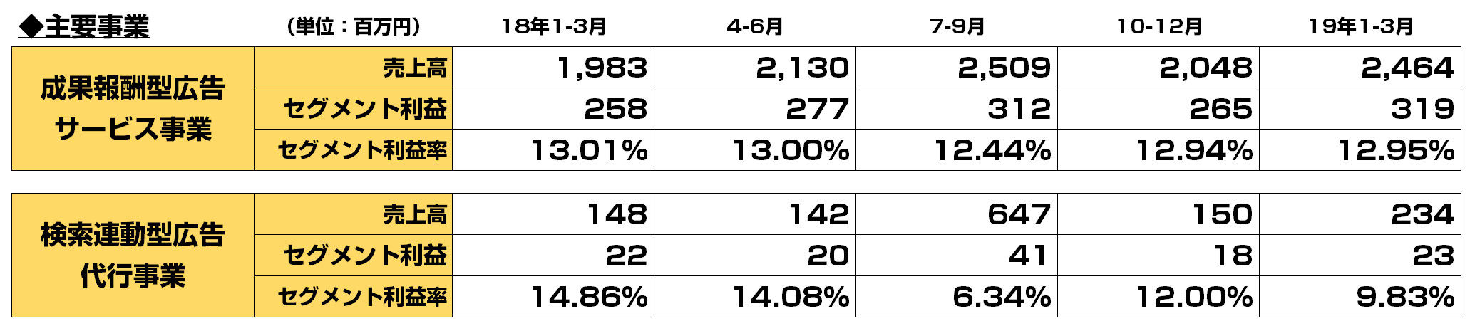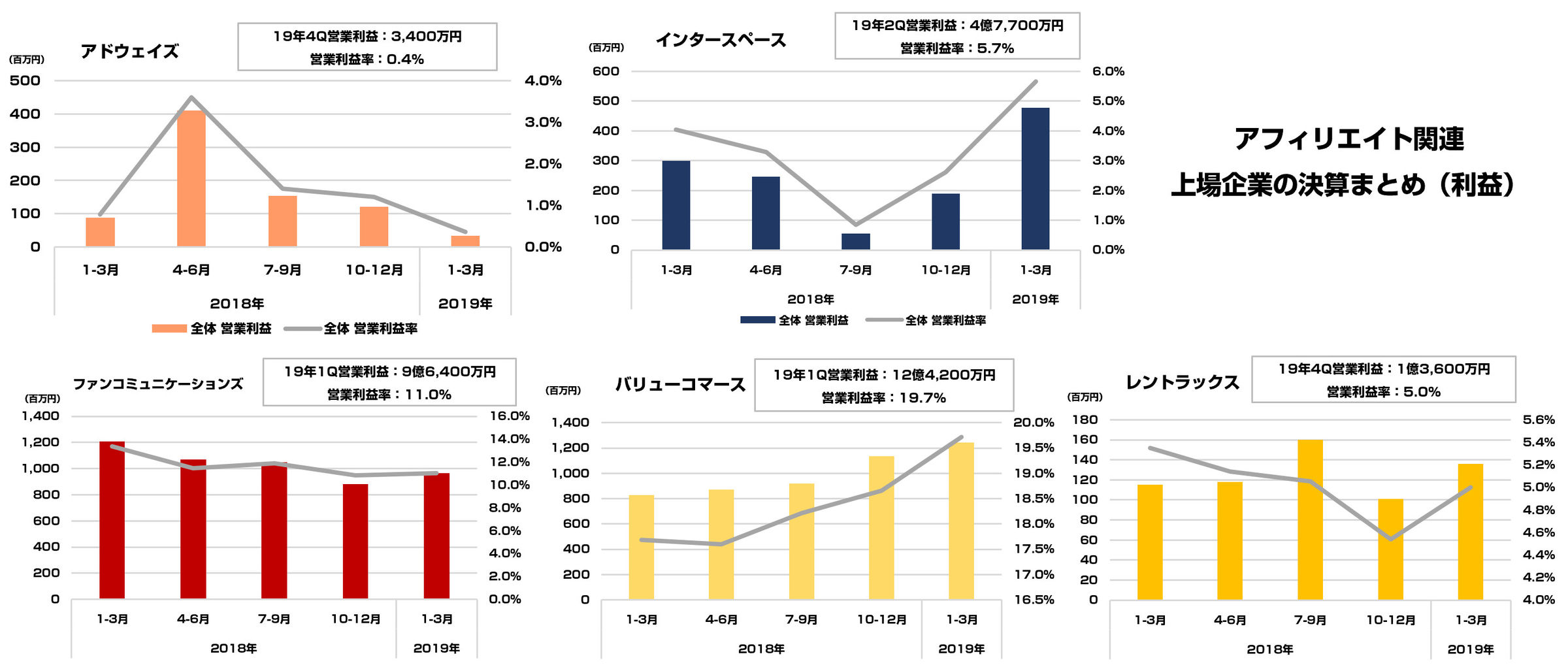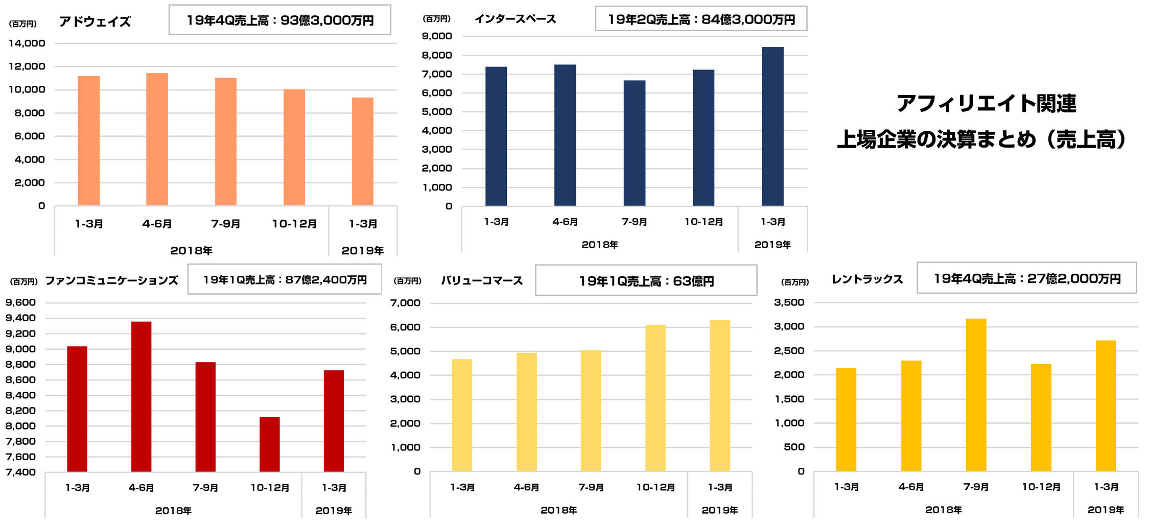 以上、主要アフィリエイト会社の2019年1-3月の決算まとめです。次回また夏にまとめたいと思います。ではまたお会いしましょう。
