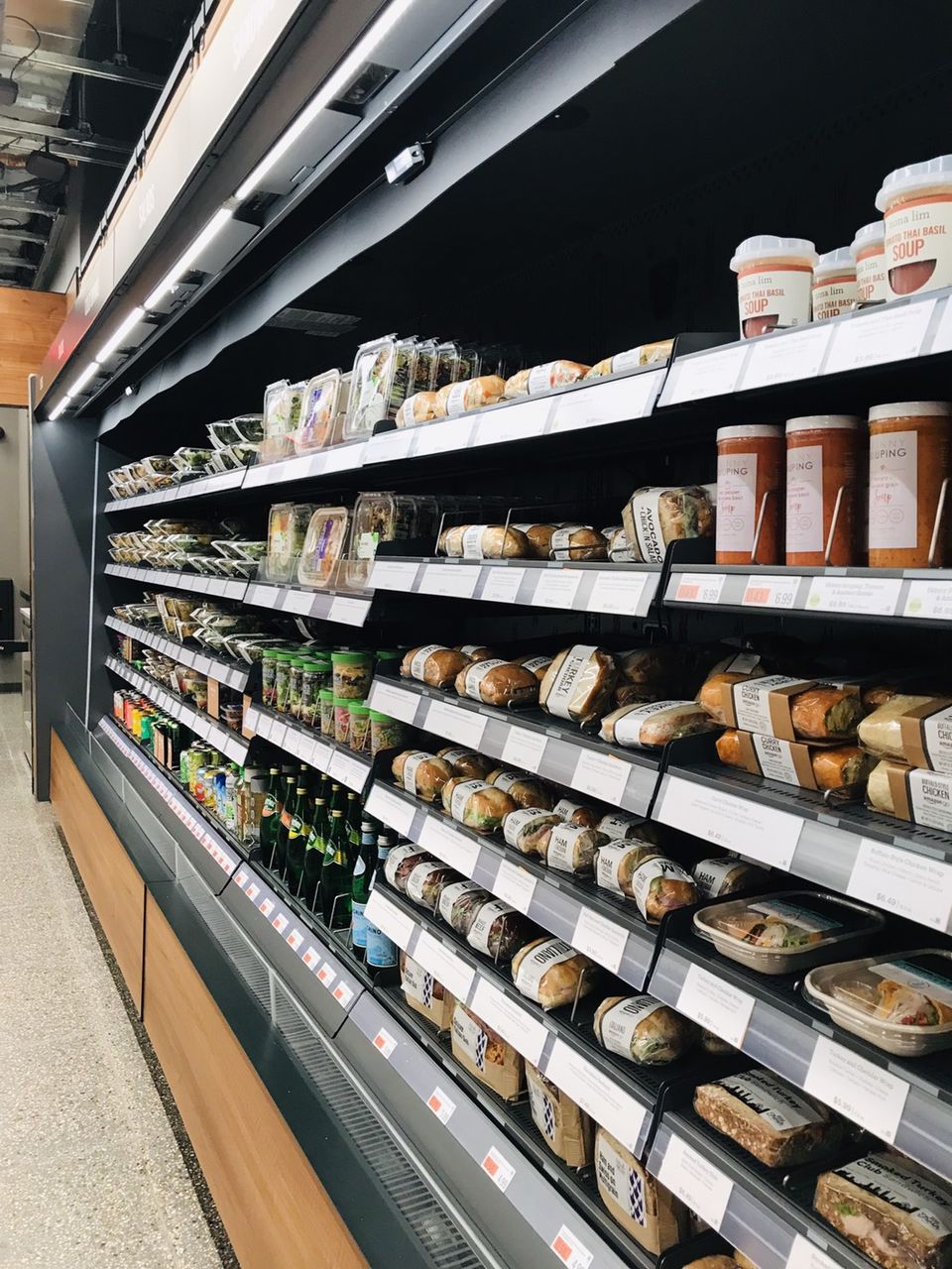 お店はこじんまりとした作り。日本のコンビニの半分くらいのイメージ。何回か行きましたが、Amazonのトレーナーを着たフロアスタッフが1-2名が常時います。