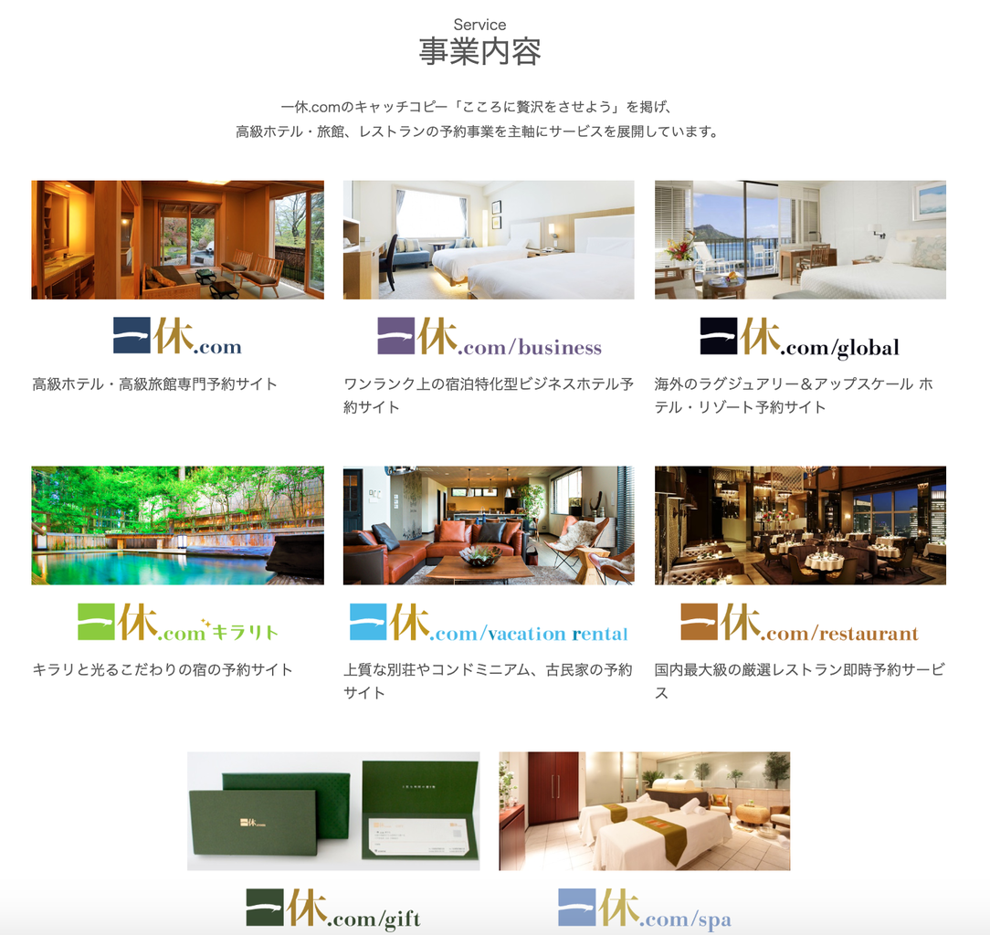 ほぼ初めて一休のHP見てみましたが、以下のように様々なサービスを展開しているようで非常に興味深く感じました。