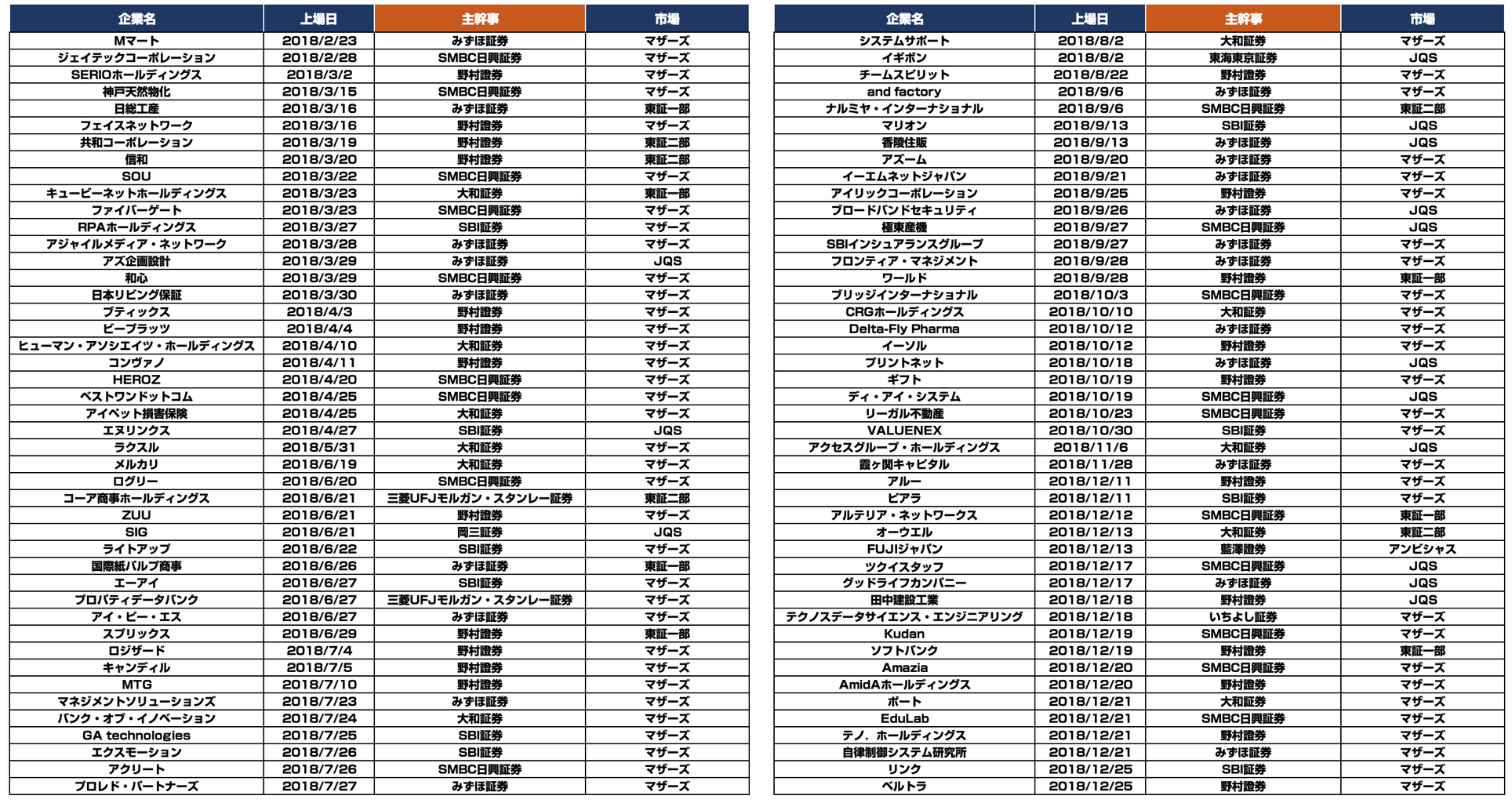 2018年新規上場:90社