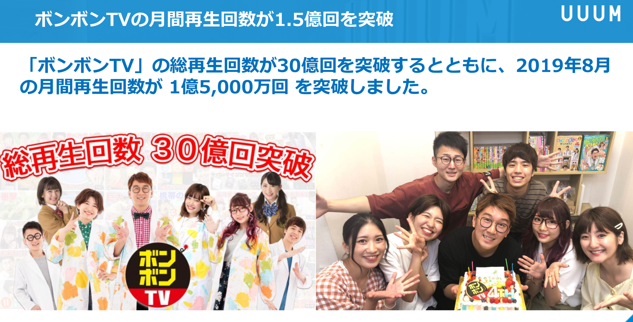Q毎の動画再生回数の推移は上記の通り。こちらも引き続き伸しており115億7,000万 再生回数/Q、チャンネル数は8,668となっております。
