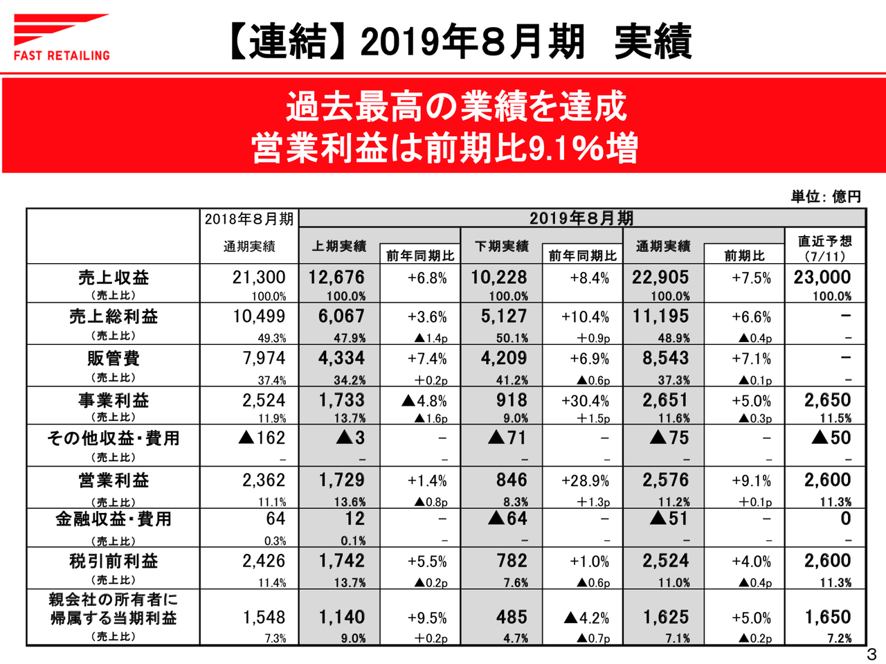 出典:ファーストリテイリング 2019年8月期通期決算説明会資料