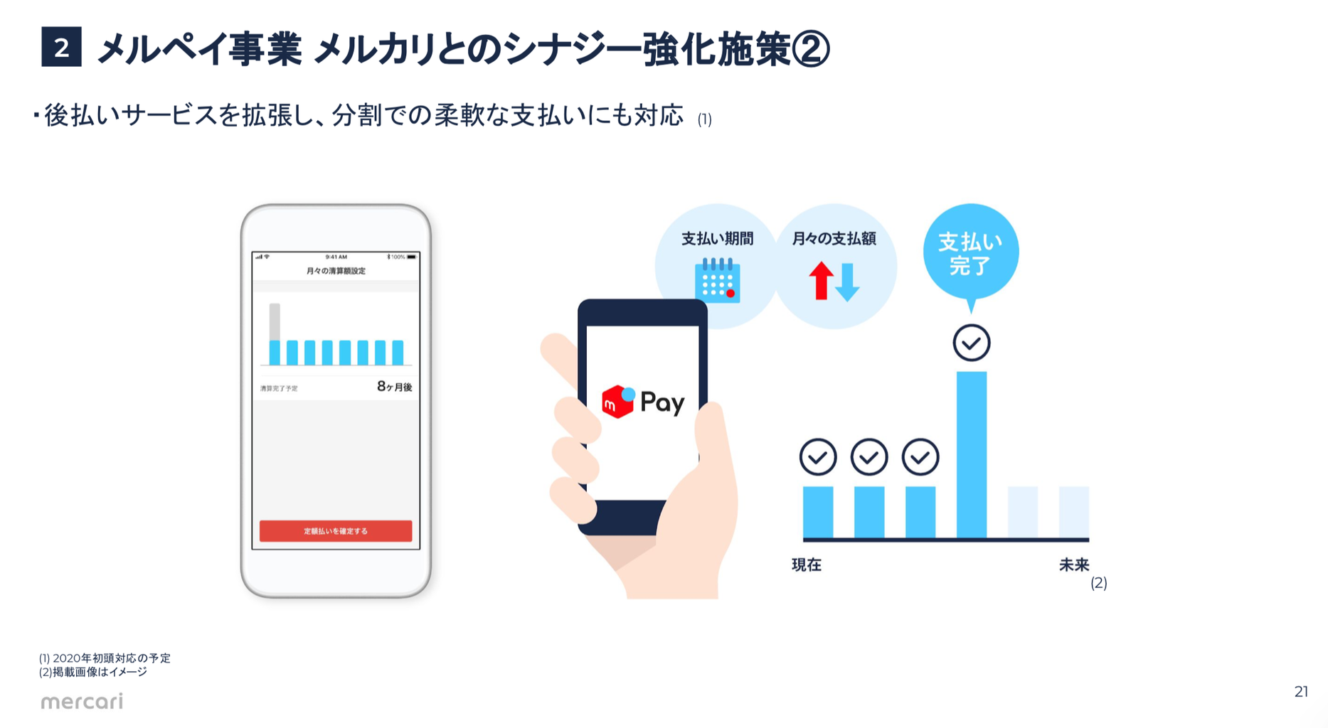 現在の施策や今後について資料で言及がありましたが、現在はフェーズ1-2で、引き続きの先行投資とメルカリとのシナジーに注力とのこと。今期も積極投資が続きそうです。