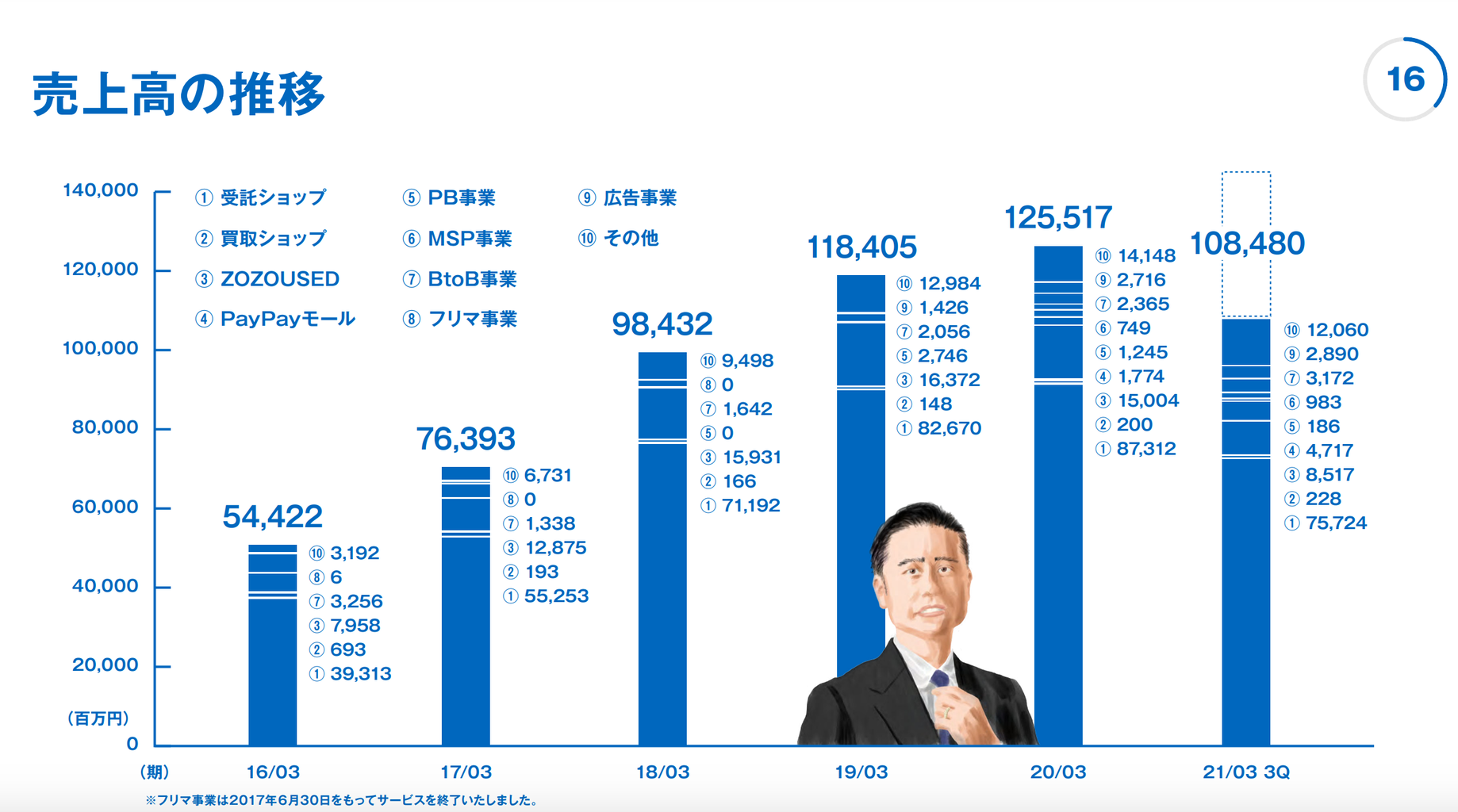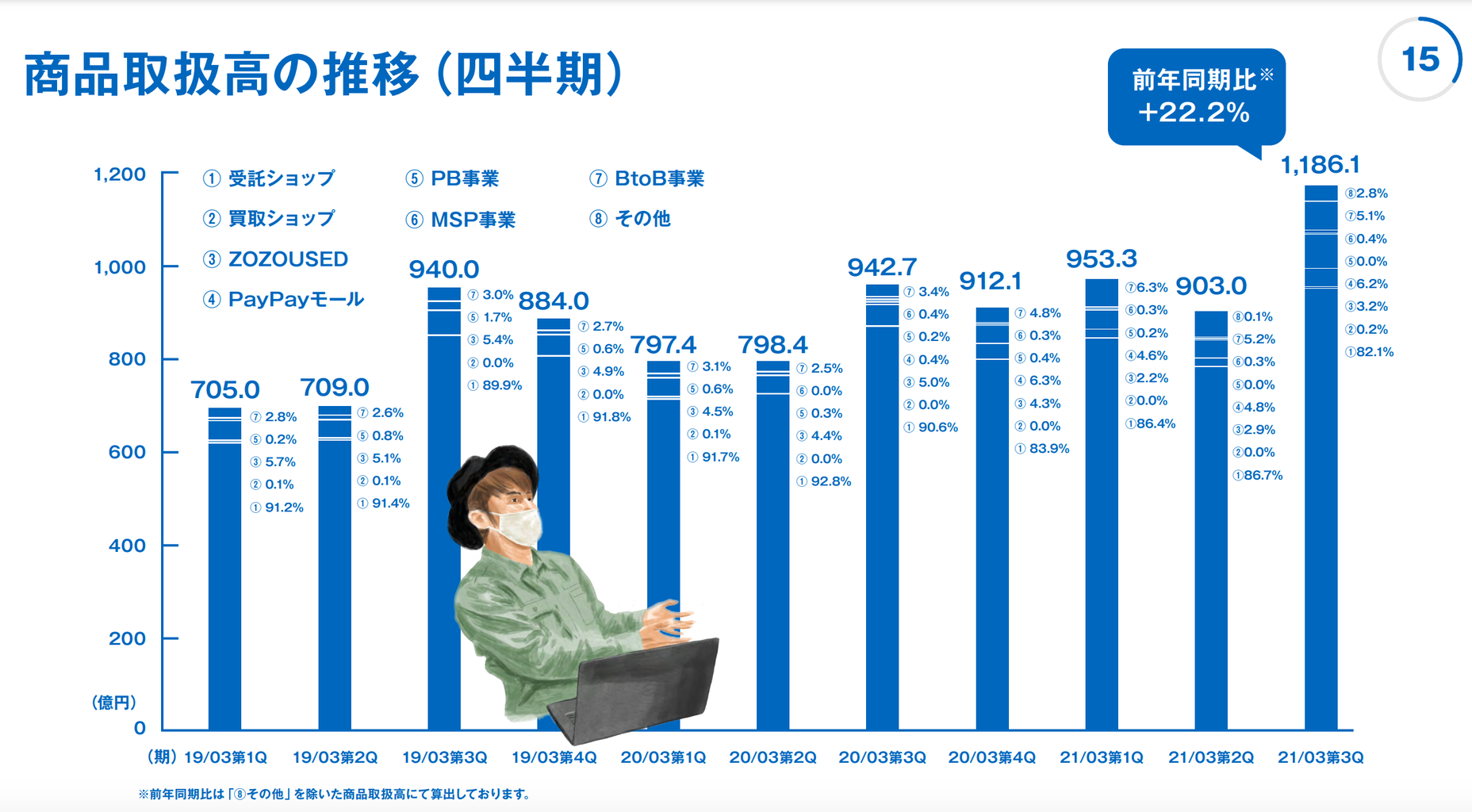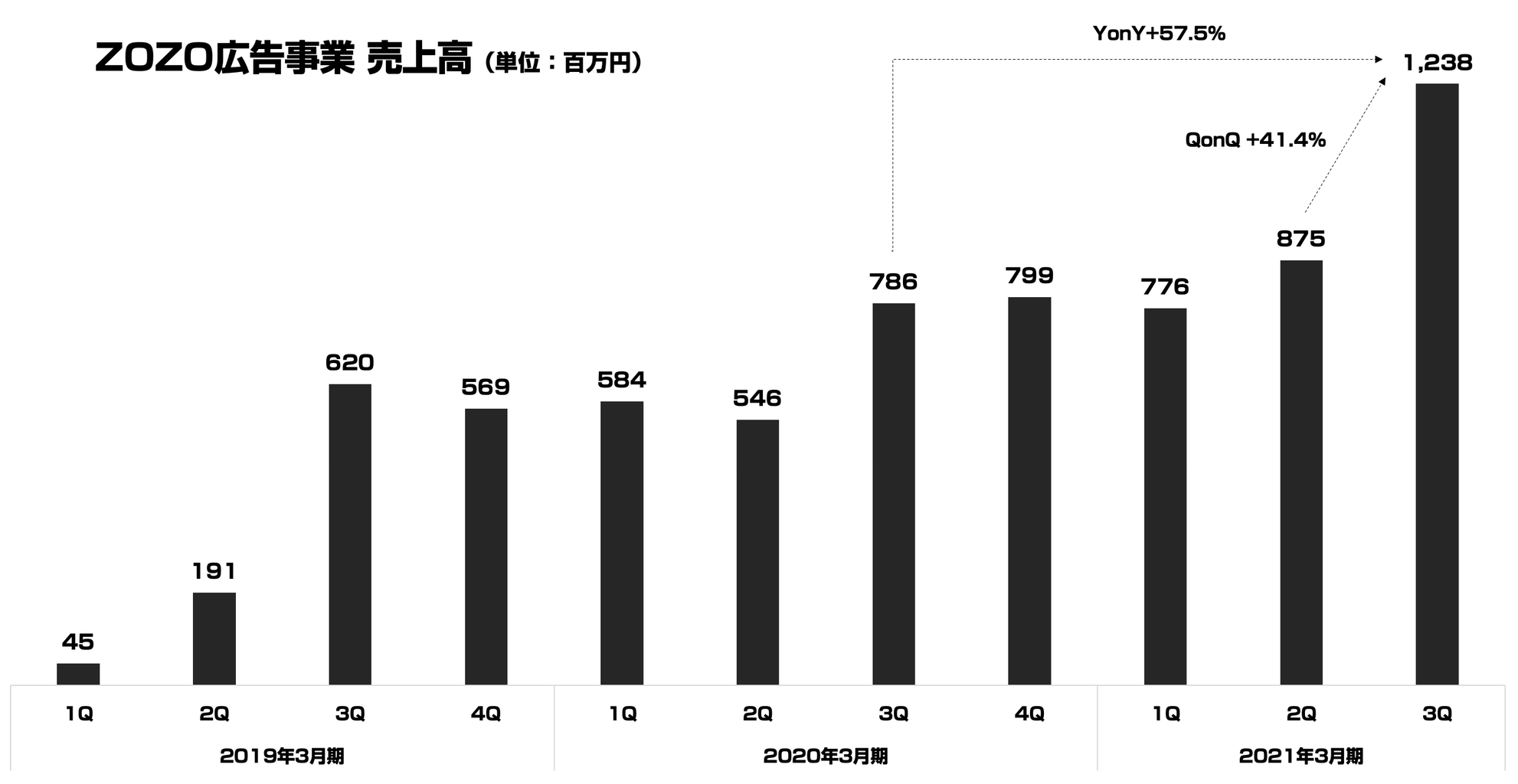 まずは、ZOZOのセグメント別での四半期売上推移から見ていきますが、このスライドの ⑧ に該当するのが、広告事業になります。この部分だけを抜き出してみると以下のようになります。